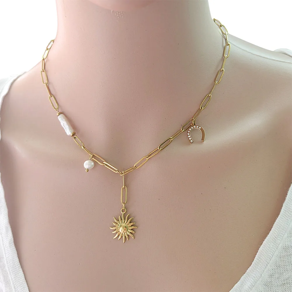 S’imaginer porter ce collier unique, c’est déjà un pas vers l’élégance et la séduction. Confectionné avec des matériaux de qualité tels que l’acier inoxydable, des perles et des pierres naturelles, il incarne à la fois durabilité et raffinement. Ce bijou apporte une note personnelle à votre style, faisant de vous une véritable trendsetter.
