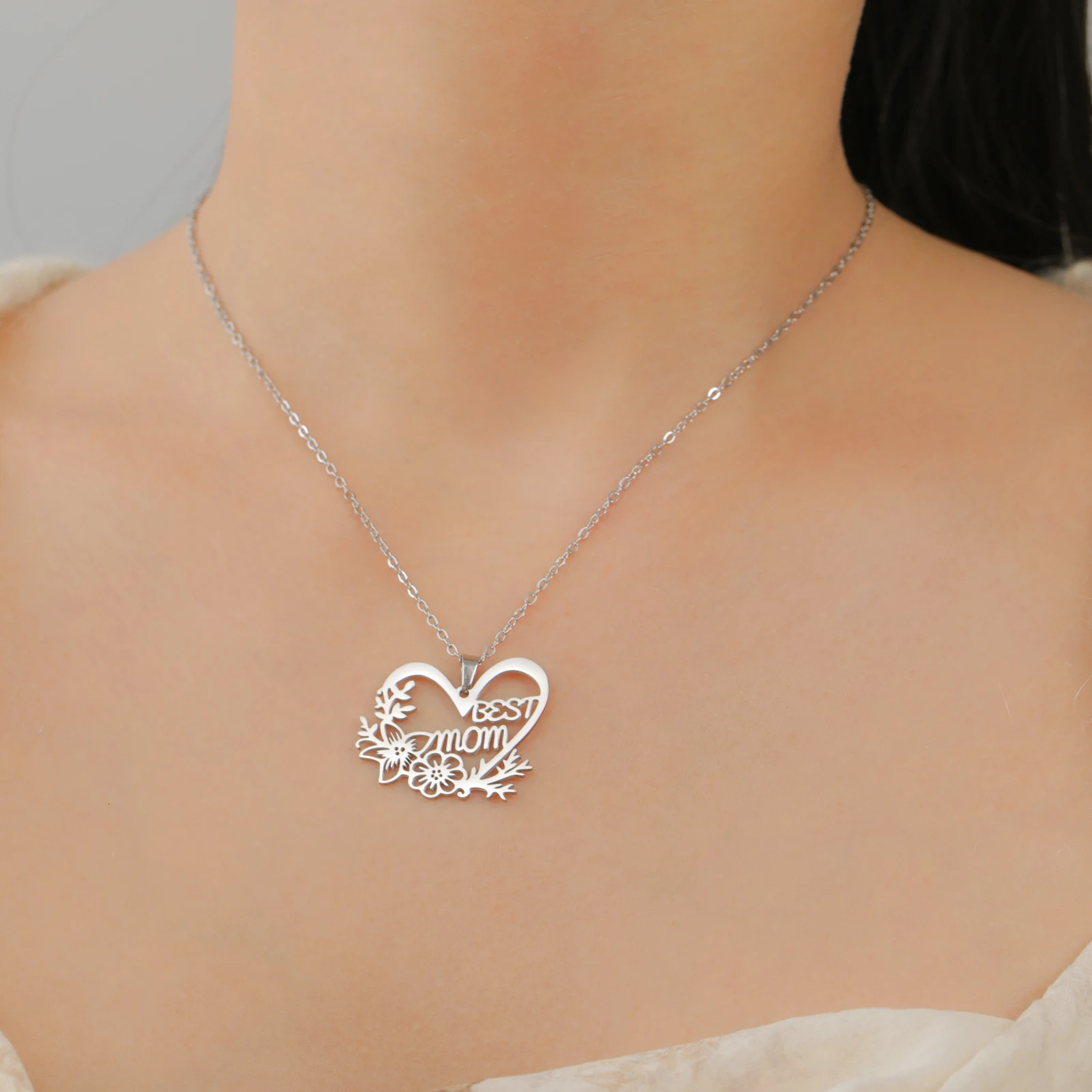 Célébrer les mamans est essentiel, et leur montrer à quel point elles sont appréciées est une belle intention. Le collier best Mom avec pendentif en forme de cœur et fleur est un bijou unique, un véritable symbole d’amour et de lien profond entre mère et enfant.