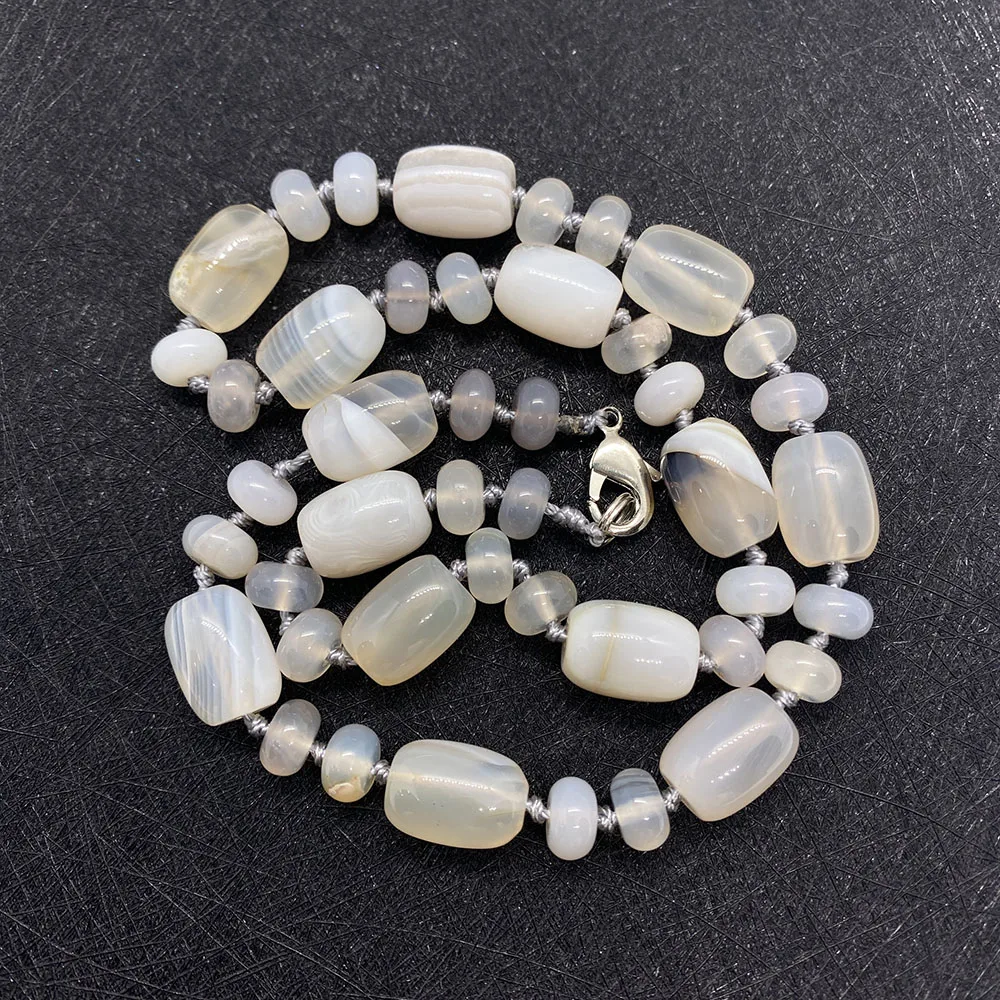 - Collier en pierre naturelle avec perles géométriques cylindriques.