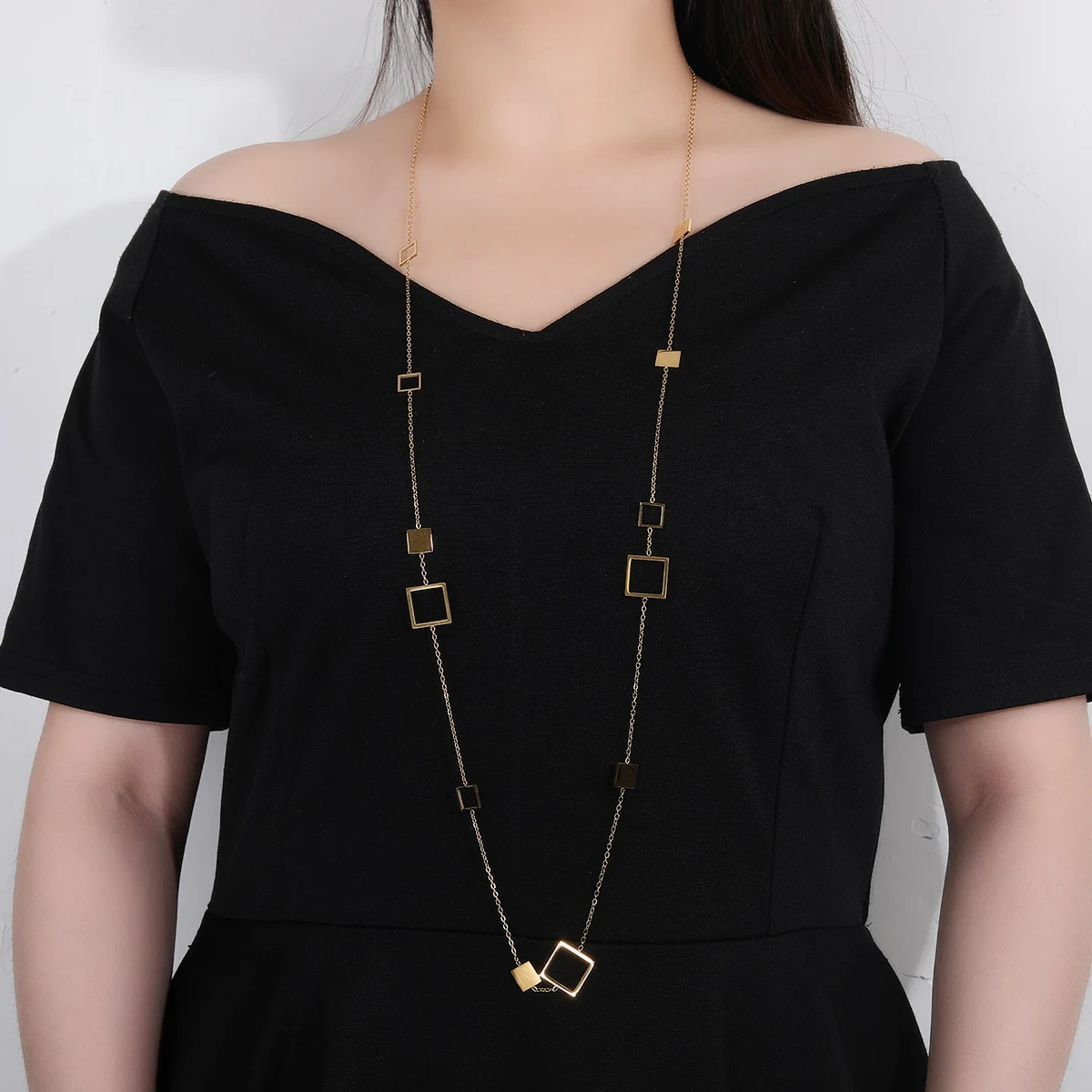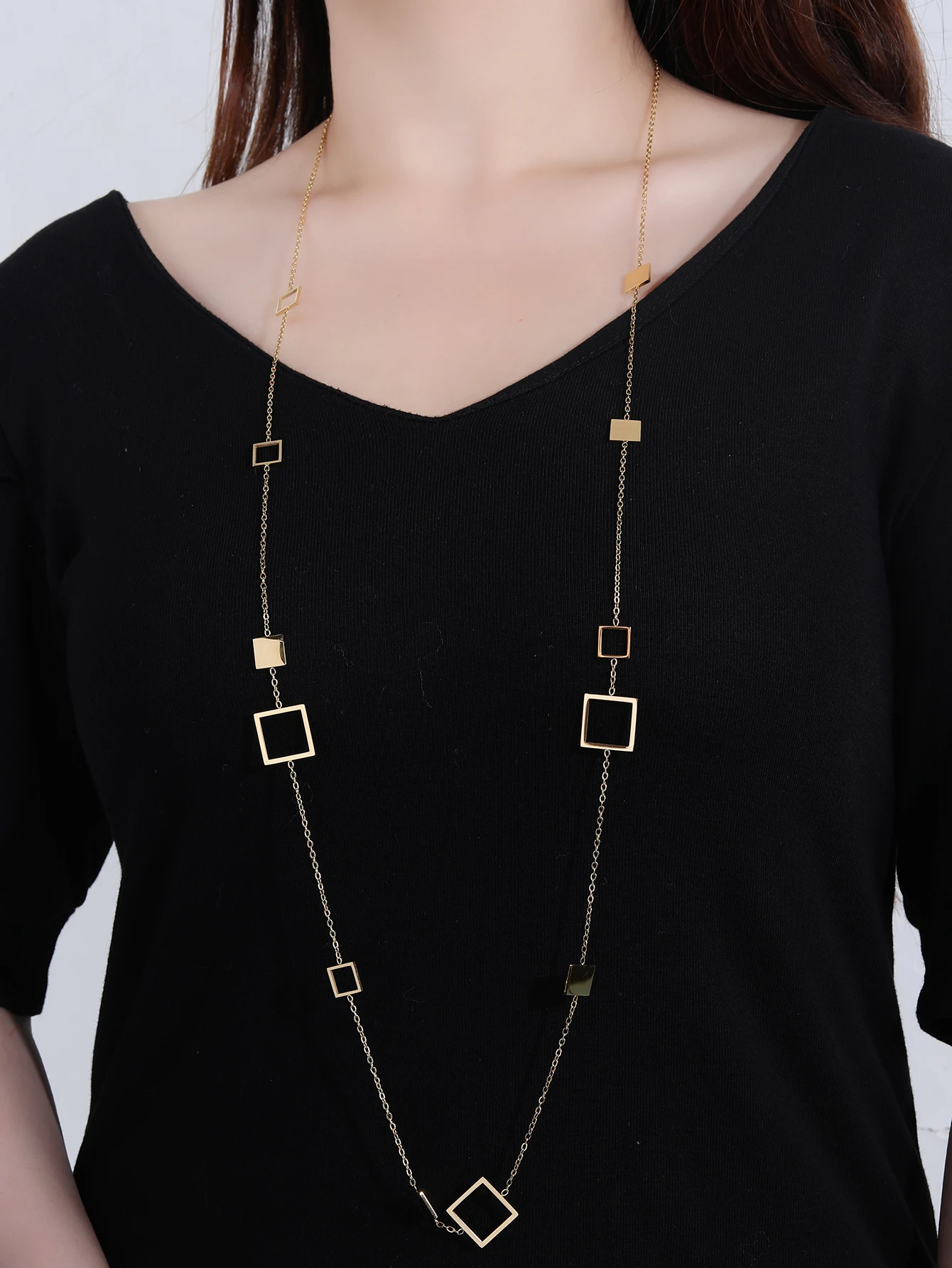 Votre nouveau Collier Long – Sautoir En Acier Inoxydable Avec Formes Géométriques préféré