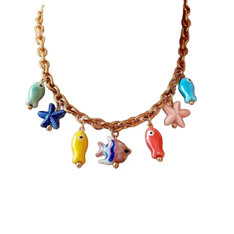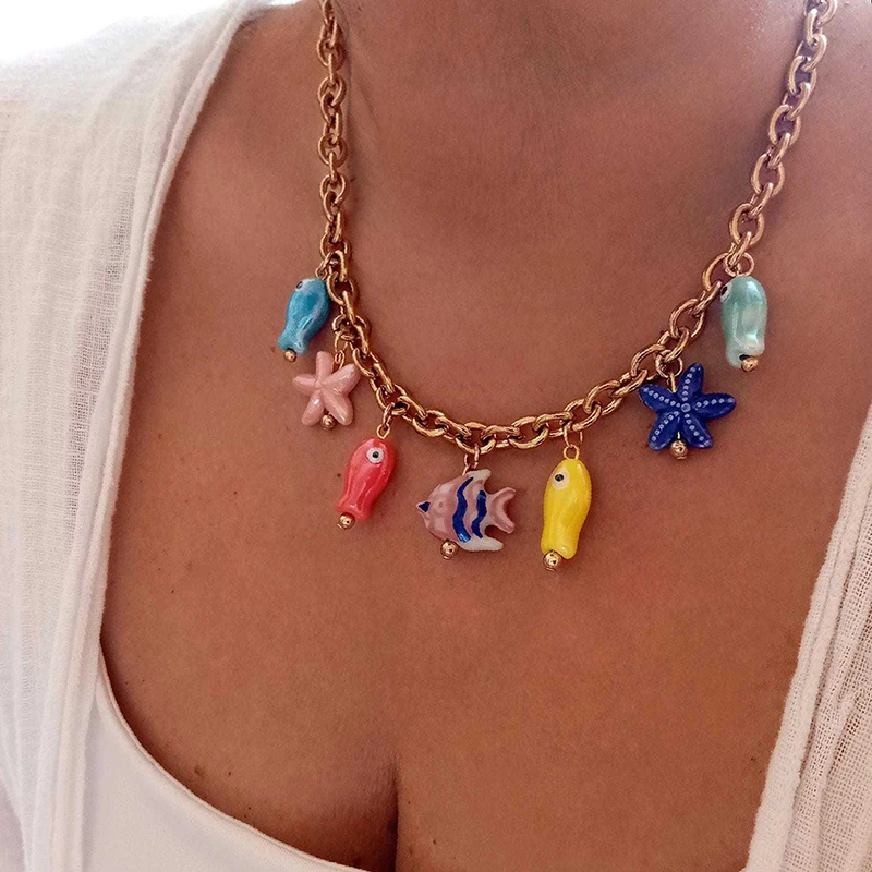 Découvrez le collier pendentif poisson en céramique, une véritable œuvre d’art inspirée par la beauté des océans. Ce collier en céramique séduit par son design original qui imite à la perfection l’apparence de véritables poissons, apportant ainsi une touche artistique et naturelle à n’importe quelle tenue.