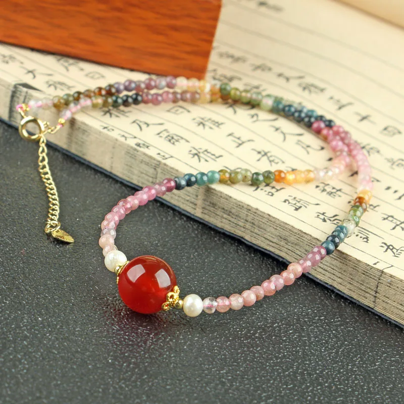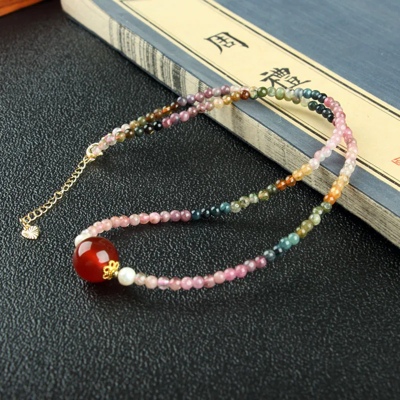 Illuminez votre cou avec le Collier Princesse En Grenat Et Tourmaline Naturelle