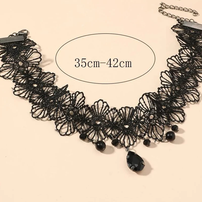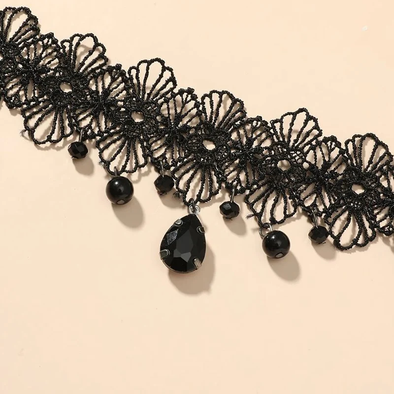 Tout ce dont vous avez besoin : Collier Ras De Cou Dentelle Noire Vintage Avec Pendentifs