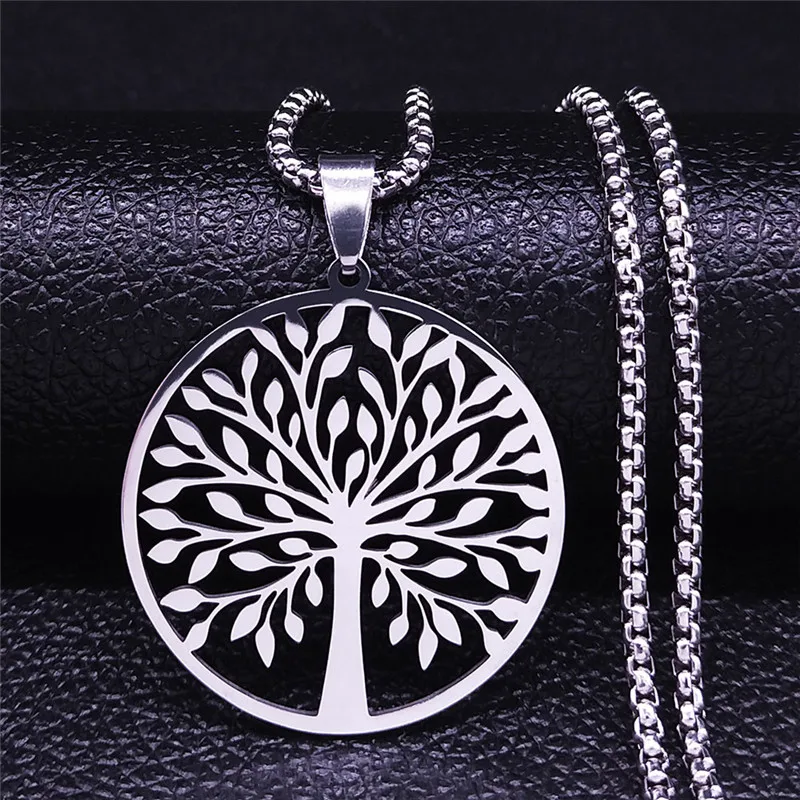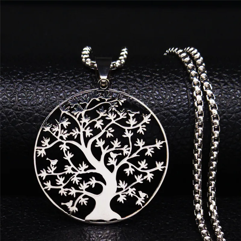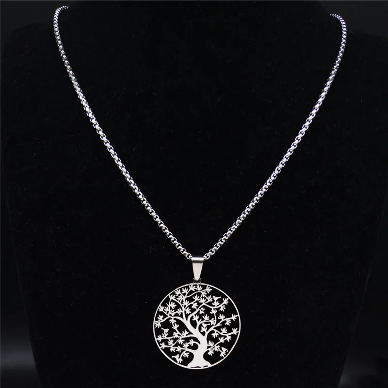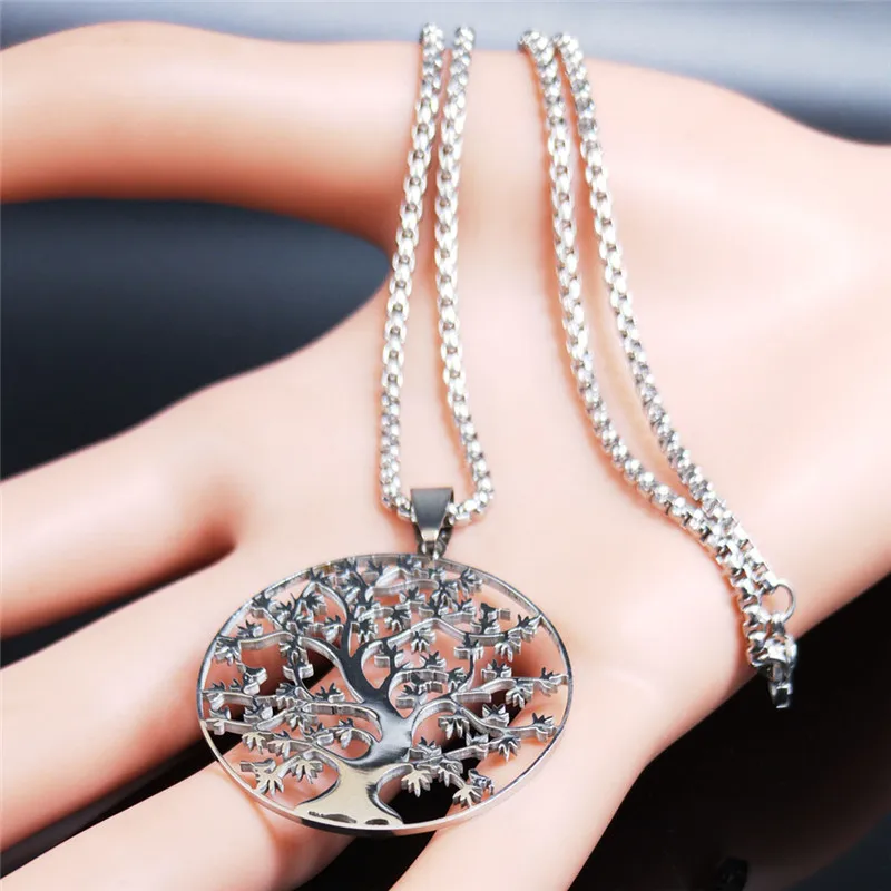 • Tree of Life Stainless Steel Fashion Necklaces Women Statement Necklaces Silver Color Chain Necklace Jewelry bayan kolye