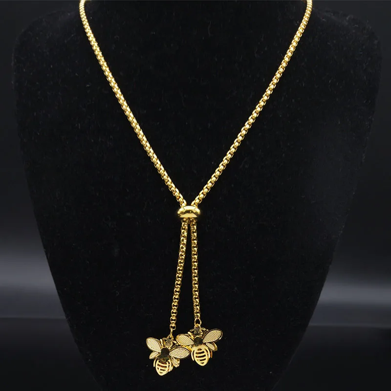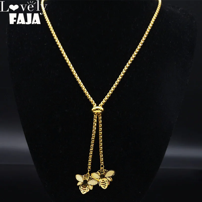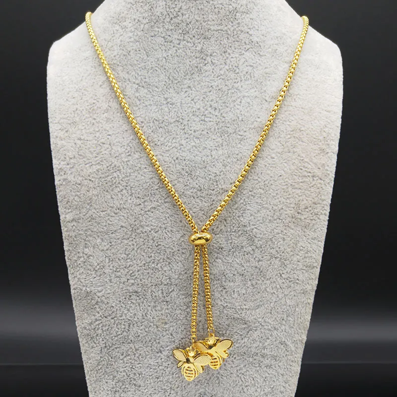 - 2021 Fashion Bee Stainless Steel Long Necklace for Women Gold Color Statement Necklace Jewelry colgantes mujer moda